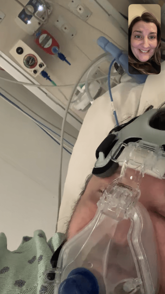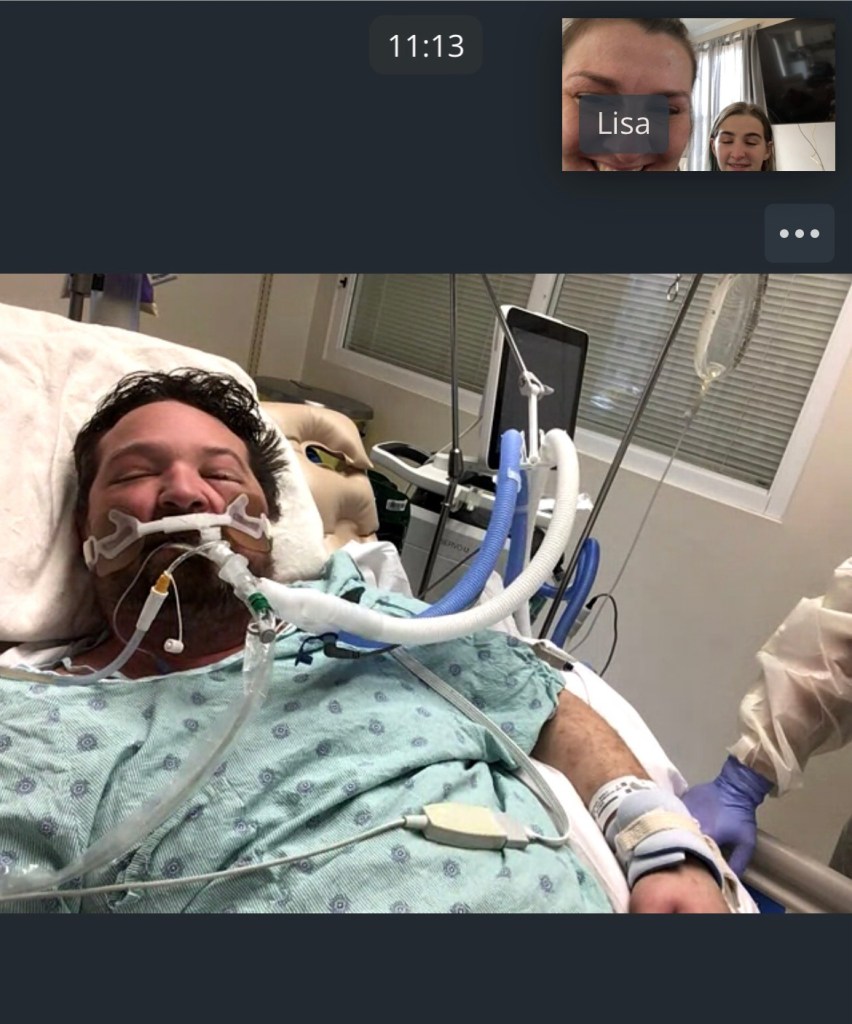 We all sat in excitement while the call loaded and there he was! He was still intubated, but waking up! He was signing “I love you” and smiling behind the tubes.